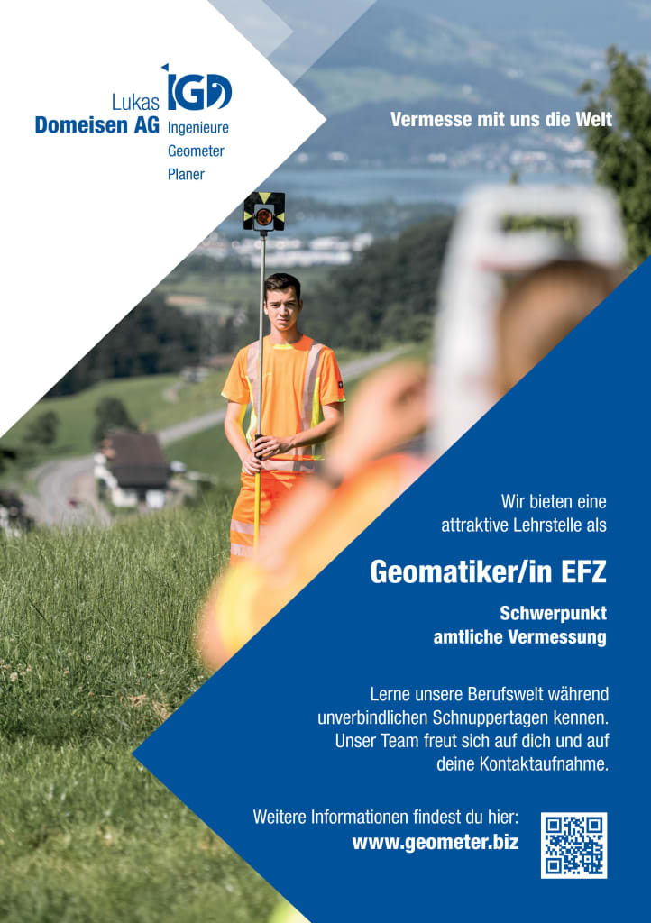 Interessiert am Beruf eines Geomatikers? Für weitere Informationen oder eine Schnupperlehre einfach anrufen auf 055 286 13 60 (Hauptsitz Uznach).