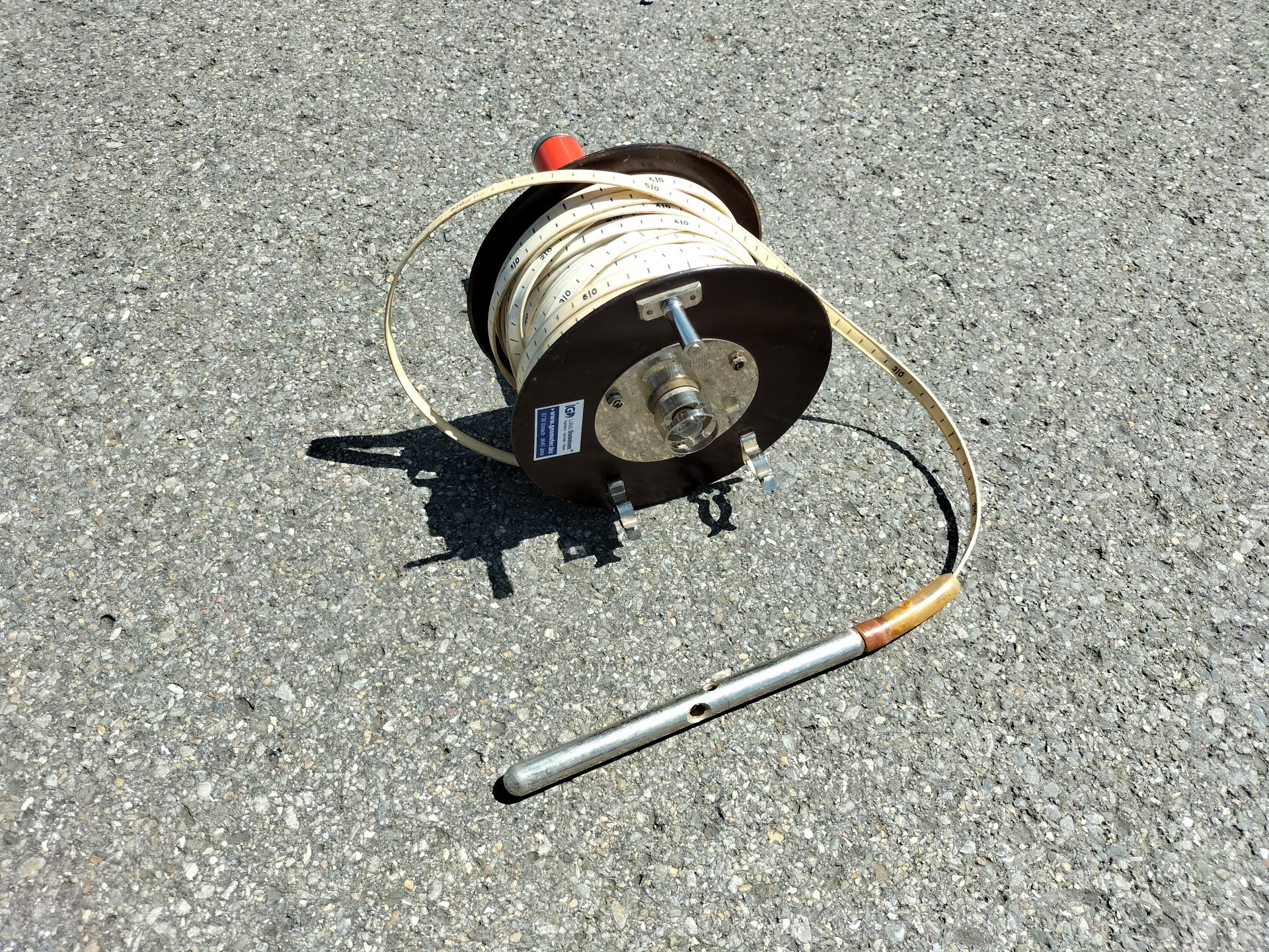 Mit einem Kabellichtlot kann man auf einfache Weise die Lage des Wasserspiegels in Brunnen, Bohrungen oder Pegelrohren messen. Das Instrument wird in die Tiefe gelassen; sobald der Sensor die Wasseroberfläche erreicht, leuchtet eine Kontrolllampe auf, und die Tiefe kann vom Messband abgelesen werden.